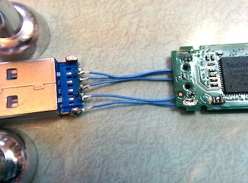 - As a result I don’t actually know the marked capacity. There were no obvious maker name or logo artwork on the PCB but the FLASH memory chips were marked just clearly enough to recognize a SanDisk logo and a hint that they might have been 128 GB. ↩